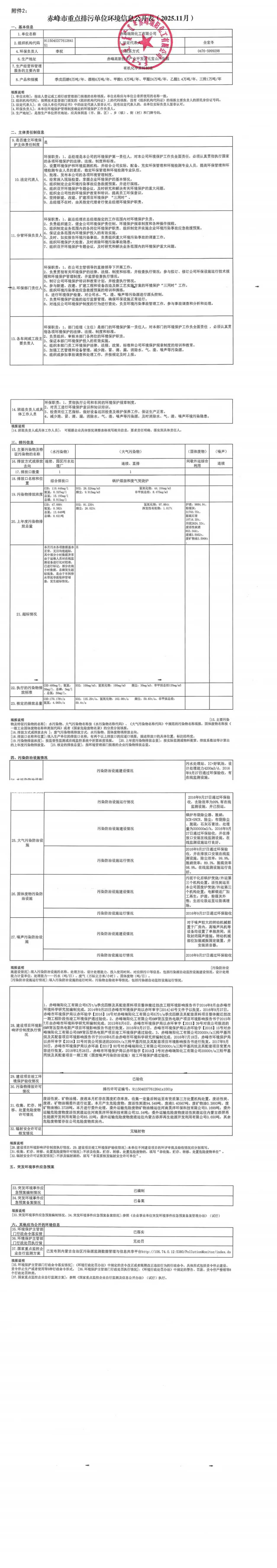 赤峰市重點排污單位環(huán)境信息公開表【2025.11】
